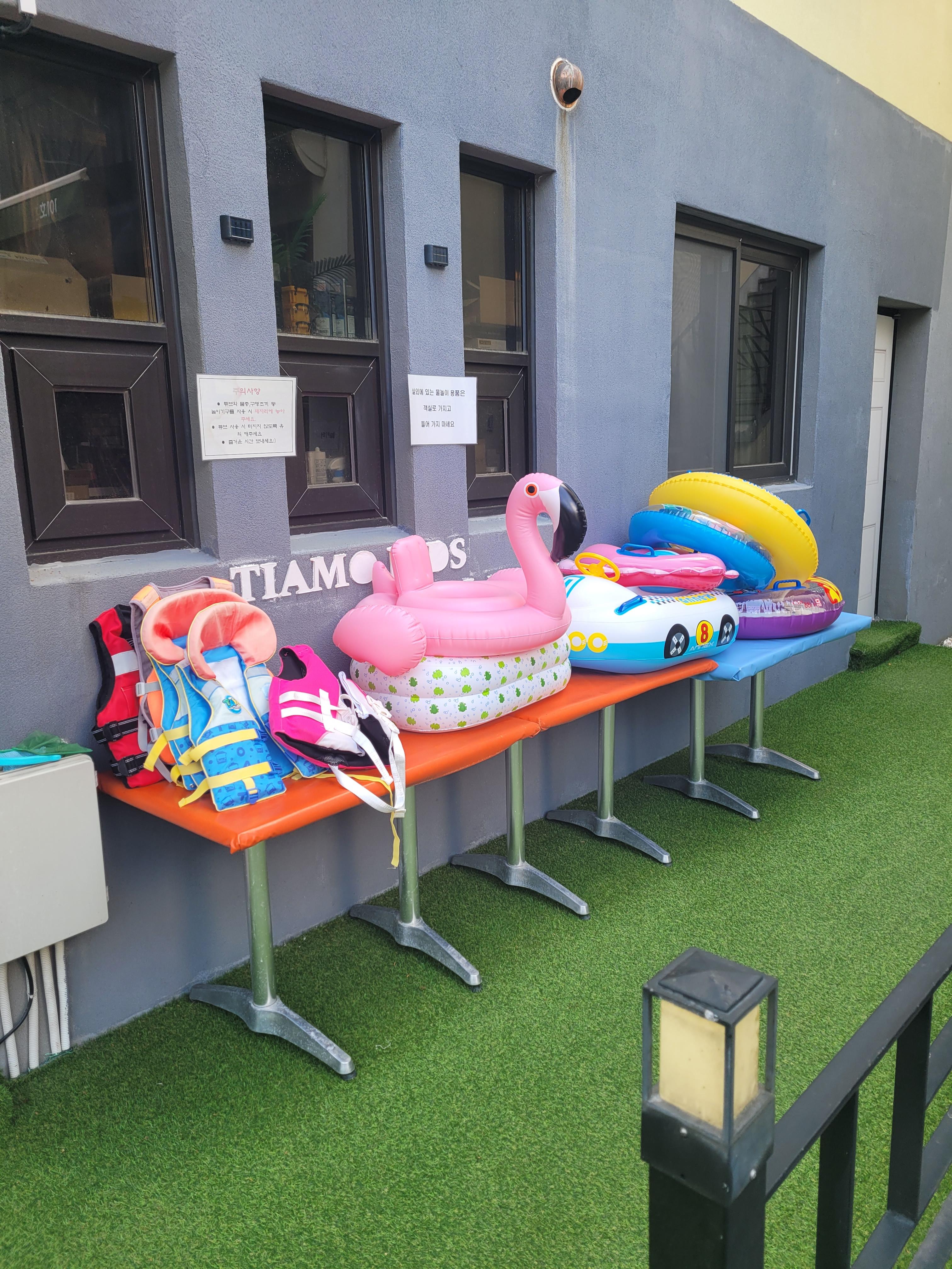 내부 수영장에도 공부터 튜브 그리고 구명조끼등 물품이 준비되어 있고