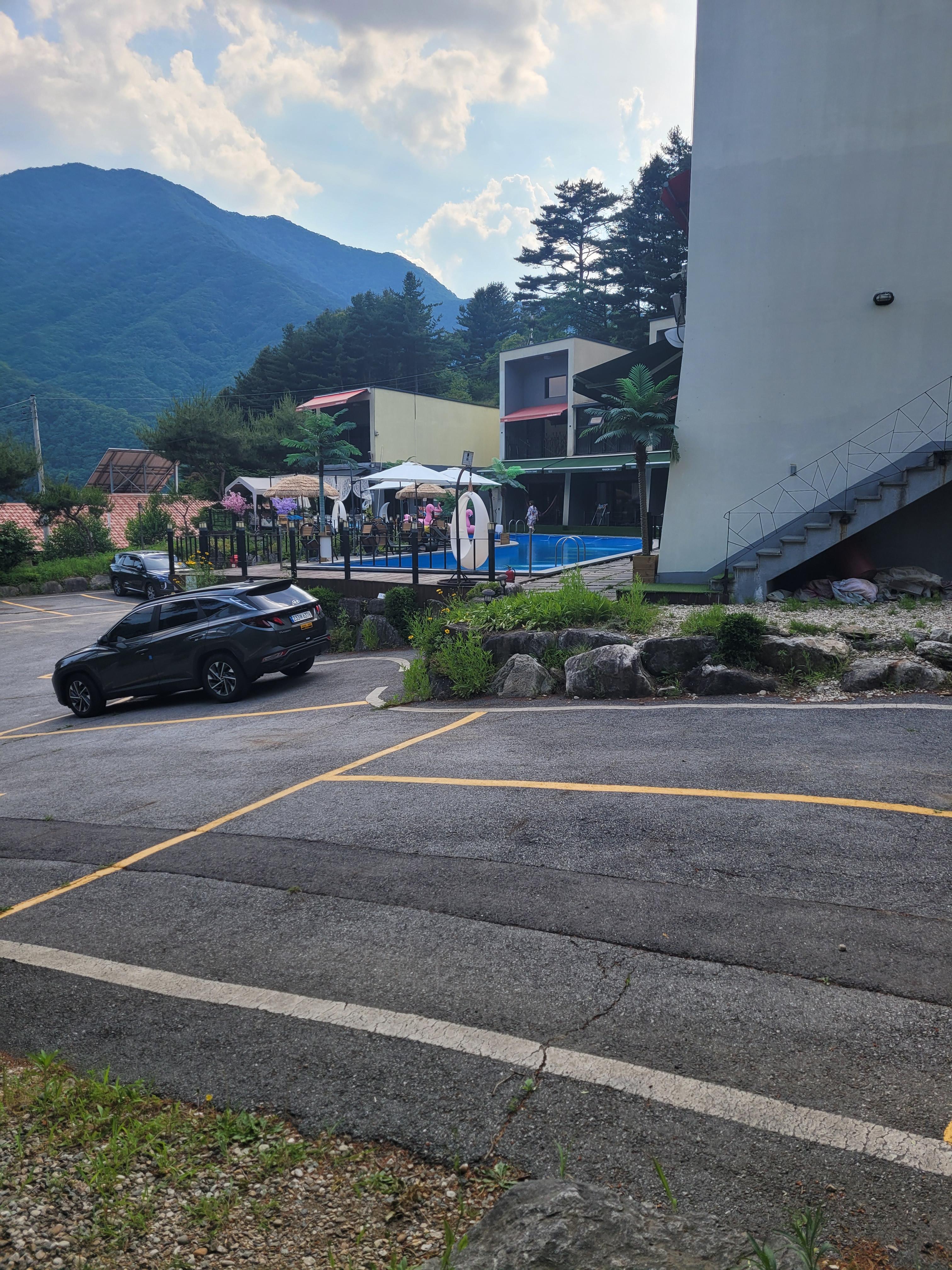 펜션 앞쪽으로 크게 주차장이 있고 측면으로도 주차장이 있습니다.
